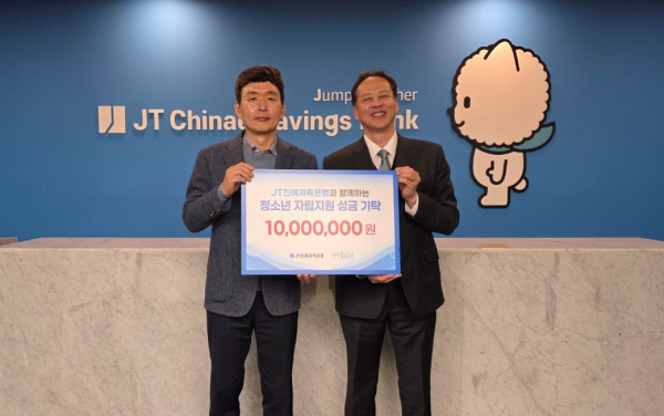 최성욱 JT친애저축은행 대표이사는 “관심과 돌봄이 필요한 아동과 청소년들이 보다 밝게 성장해 사회에 안정적으로 정착하길 바라는 마음으로 이번 후원을 진행했다”며 “앞으로도 지역사회 소외 계층을 위한 다양한 사회공헌 활동을 지속적으로 추진해 나가겠다”고 밝혔다.
