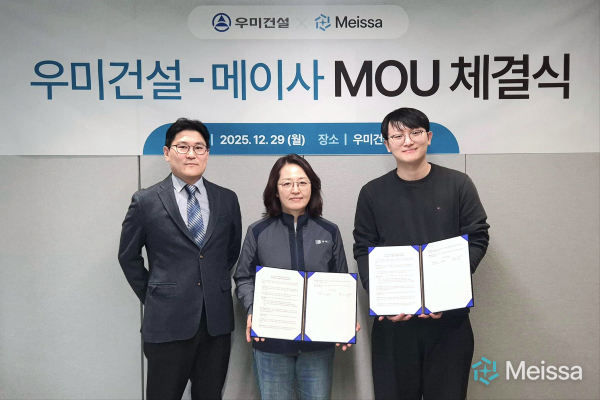 메이사가 우미건설과 ‘시공 기록 자동화 및 디지털 트윈 기반 현장 운영 기술 개발’을 위한 업무협약(MOU)을 체결했다고 16일 밝혔다.