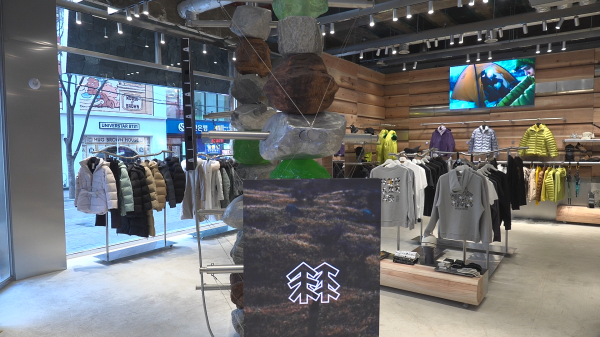 아웃도어 브랜드 코오롱스포츠가 최근 문을 연 '코오롱스포츠 서울' 입니다. 외국인 관광객과의 접점을 확대하고, 글로벌 브랜드로 본격 도약하기 위해 명동에 새로운 플래그십 스토어를 열었습니다.