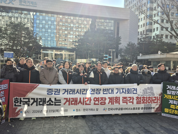 아울러 사무금융노조는 거래소의 거래시간 연장 계획이 철회되지 않을 경우 강경 대응에 나설 방침이다. 이번 정책 추진을 임기 말 치적 쌓기식 결정으로 규정하며, 거래소 수장의 책임을 강하게 묻겠다는 입장이다.
