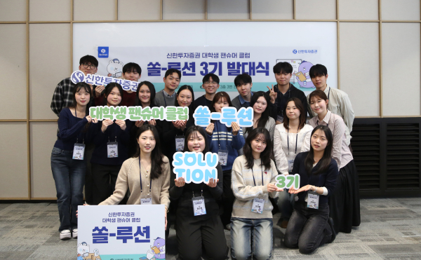 신한투자증권은 대학생 참여형 프로그램인 팬슈머 클럽 ‘쏠-루션’ 3기 발대식을 지난 23일 개최했다고 28일 밝혔다.