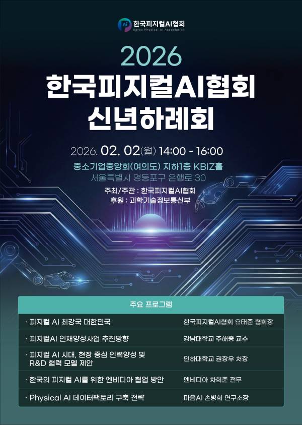 한국피지컬AI협회는 2일 중소기업중앙회 KBIZ홀에서 '2026 한국피지컬AI협회 신년하례회'를 개최한다.