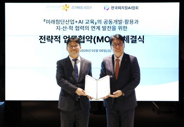 한국피지컬AI협회와 동국대학교 경기 RISE사업단은 지난 6일 바이오메디컬 특화 캠퍼스 환경을 기반으로 피지컬 AI(Physical AI)데이터 생태계 협력을 위한 업무협약(MOU)을 체결했다고 9일 밝혔다.