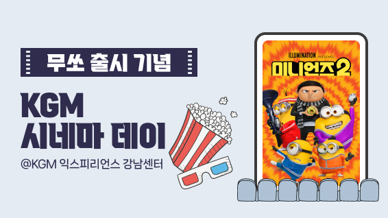 ‘KGM 시네마 데이’는 영화 관람을 즐기며 차량과 브랜드 공간을 함께 체험할 수 있도록 구성된 프로그램으로, 문화 콘텐츠를 통해 브랜드를 자연스럽게 경험할 수 있도록 했다. 가족, 연인, 친구 등 누구나 부담 없이 참여할 수 있으며, 인기 애니메이션 영화 ‘미니언즈2’를 관람하며 여유로운 주말을 보낼 수 있다.