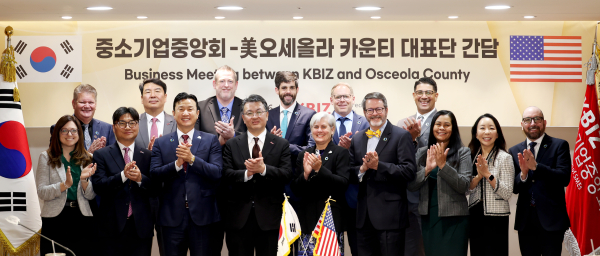 이번 간담회에는 오기웅 중기중앙회 상근부회장과 셰릴 그리브 오세올라 카운티 부의장, 헌터 킴 플로리다한인상공회의소 회장, 존 뉴스트리트 오세올라 카운티 상공회의소 회장 등이 참석했습니다. 오세올라 카운티는 플로리다주 중심부에 위치한 지역으로, 반도체·광학기술 클러스터인 ‘네오시티’를 중심으로 첨단 IT산업 투자를 확대하고 있습니다.