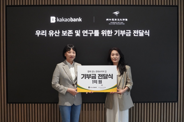 카카오뱅크가 광복 80주년을 맞아, 우리 전통 문화유산을 지키고 다음 세대에 온전히 전하기 위해 ‘간송미술문화재단’에 1억원을 기부했다고 19일 밝혔다.
