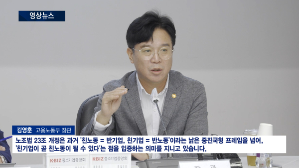 중소기업중앙회가 노조법 개정과 관련해 김영훈 고용노동부장관을 초청해 중소기업인들과의 소통의 자리를 마련했습니다.