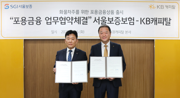 KB캐피탈은 지난 26일 SGI서울보증과 ‘화물 운송료 선정산 금융 서비스’ 사업 업무협약을 체결했다고 27일 밝혔다.