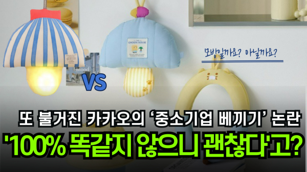 카카오가 중소기업의 상품 디자인을 베꼈다는 주장이 또 다시 제기 됐다. 지난 2020년에도 카카오의 캐릭터 상품을 제작·유통하는 카카오커머스가 중기 제품을 도용했다는 의혹이 불거진 바 있다. 이번에는 카카오프렌즈팀이 당사자다.