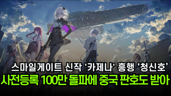 ‘카제나’는 스마일게이트의 개발 스튜디오 '슈퍼크리에이티브'가 7년 만에 선보인 신작. 지난 7월 9일부터 사전등록을 시작해 한 달 반 만인 27일 100만명을 돌파했다. 특히 공식 출시 전인데도 최근 중국 외자 판호(게임서비스 허가권)를 발급받으면서 흥행 성공 기대감이 한껏 커지고 있는 것.