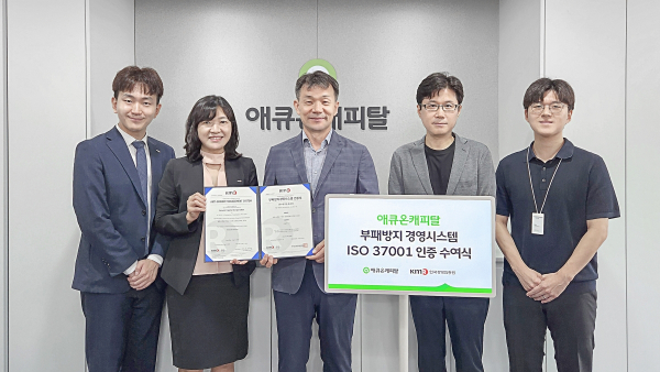 애큐온캐피탈이 지난 1일 한국경영인증원(KMR)으로부터 ‘ISO 37001’ 부패방지경영시스템 인증을 획득했다고 밝혔다.