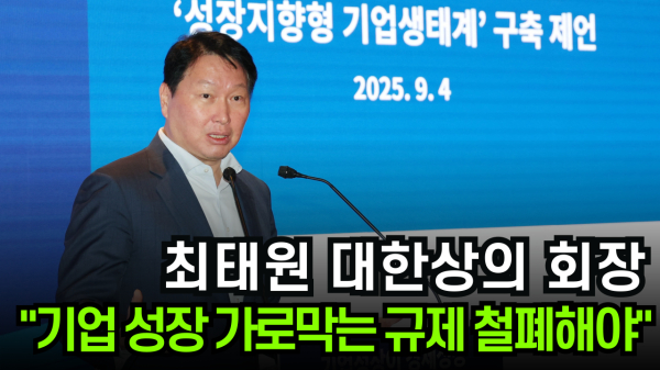 이날 현장에 계단식 규제 343건 내용을 담은 패널을 직접 준비해 온 최 회장은 "한국 경제의 계단식 규제는 과거에는 맞았지만, 지금은 틀린 이야기"라면서 "이 규제가 대한민국의 성장의 정체를 가져오고 민간의 활력을 떨어트리는 근본적인 이유다"라고 강조했습니다.