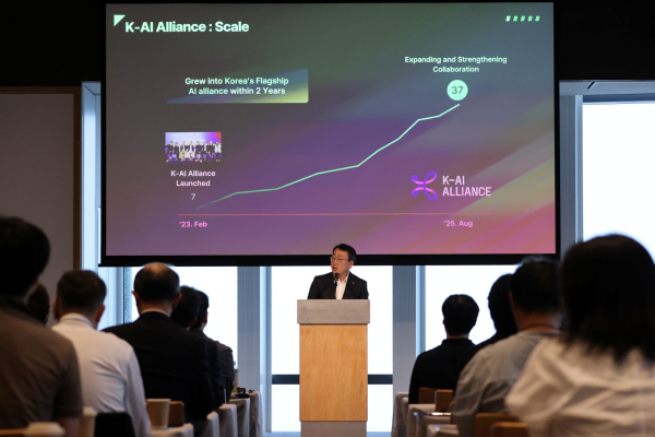 K-AI 얼라이언스는 SKT가 2023년 2월 글로벌 AI 시장 공략을 목표로 한국의 대표 AI 기업들과 결성한 연합체다. 7개 회사로 출범한 K-AI 얼라이언스는 2년만에 37개 멤버사로 확대되며 국가대표 AI 얼라이언스로 성장했다.