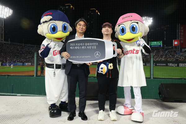 이번 이벤트는 시즌 내내 야구팬들의 뜨거운 호응을 얻어온 ‘벤츠를 잡아라’ 프로그램의 피날레 행사로, 경기 5회말 종료 후 클리닝 타임을 활용한 현장 추첨을 통해 최종 당첨자가 선정됐다. 관중들의 환호 속에 행운의 주인공이 발표되었으며, 당첨자에게는 약 5천만 원 상당의 메르세데스-벤츠 A 220 해치백 차량이 경품으로 제공됐다. 시상은 메르세데스-벤츠 한성모터스 남천전시장 김우태 지점장이 직접 맡아 현장의 의미를 더했다.