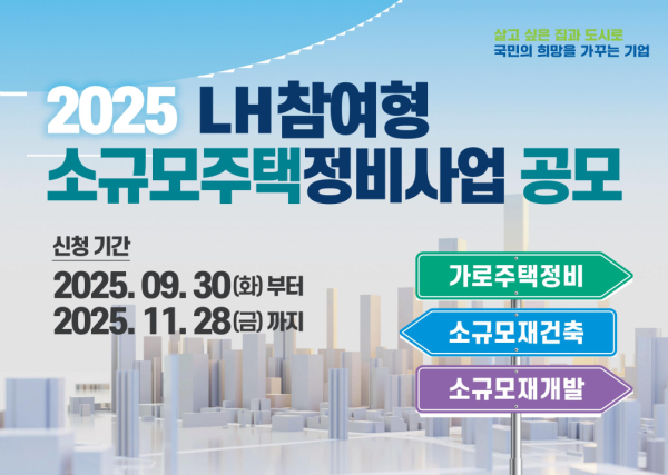 한국토지주택공사(LH)가 국토교통부와 공동으로 소규모 노후주거지를 개선하는 '공공참여형 소규모주택정비사업 공모'를 실시한다고 30일 밝혔다.