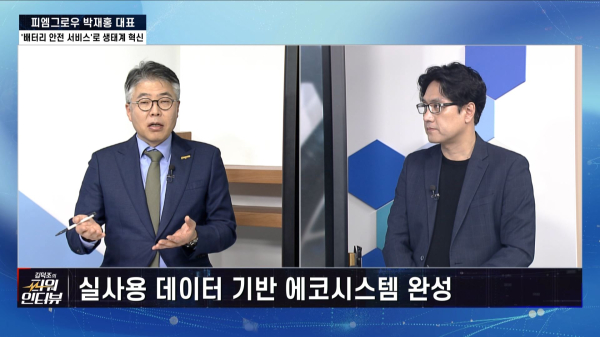 시청자 여러분 안녕하십니까. 파워인터뷰 김덕조입니다. 오늘은 전기차 배터리의 안전 데이터 서비스를 결합한 배터리 서비스 플랫폼 기업 피엠그로우를 만나보겠습니다. 박재홍 대표 자리했습니다.
