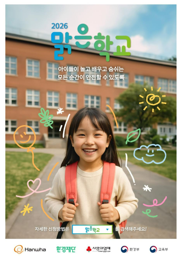 한화그룹이 초등학교 교육환경 개선 사회공헌 사업인 ‘맑은학교 만들기’ 5차년도(2026년) 신청 접수를 시작했다. 신청 기간은 10월 15일부터 11월 12일까지다.