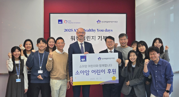 AXA손해보험(이하 악사손보)은 임직원 건강 증진과 사회공헌 활동을 결합한 ‘2025 헬시유(Healthy You Days) 캠페인’을 진행하고, 임직원 워킹 챌린지를 통해 조성된 기부금 1000만원을 한국백혈병어린이재단에 전달했다고 23일 밝혔다. 올해로 5회째를 맞은 ‘헬시유 캠페인’은 AXA그룹이 전 세계 임직원을 대상으로 운영하는 웰빙(Well-being) 프로그램의 일환으로, 건강 증진을 위한 다양한 활동에 임직원이 자발적으로 참여하는 방식으로 진행된다.