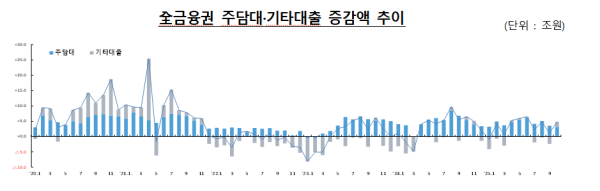 기타대출은 1조6000억원 증가해 전월 대비 증가세로 전환됐으며 이는 신용대출이 증가세로 전환된 점에 기인한다.