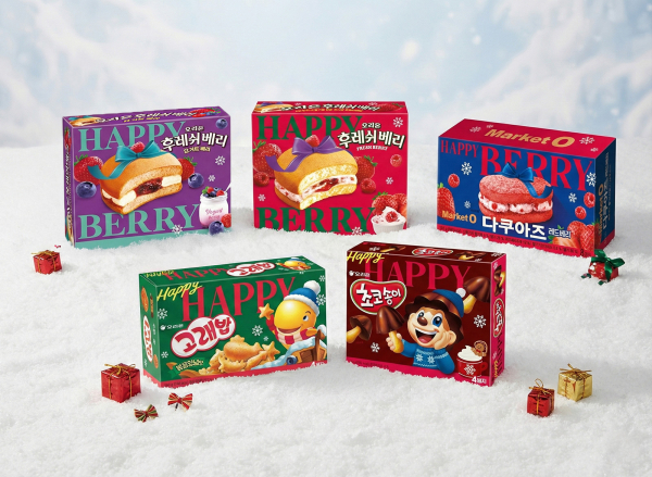 한편, 오리온은 연말 분위기를 물씬 느낄 수 있는 한정판 과자들도 추가로 선보인다. 폭신한 식감에 동결건조 딸기의 상큼함으로 작년 겨울 큰 사랑을 받았던 ‘마켓오 다쿠아즈 레드베리’를 재출시한다. 홀리데이 감성을 담아 패키지를 새단장한 후레쉬베리 2종, 고래밥, 초코송이 등 인기 과자 4종도 만나볼 수 있다.