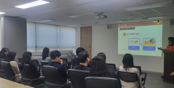 이번 집체교육은 분당소방서 소방대원 초청 강의로 진행돼 화재 발생에 대한 위험 단계별 소화 조치 방법과 대피 요령 등 상황 별 행동 매뉴얼 교육으로 진행했다.