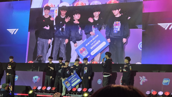 행사의 마지막은 ‘레드불 PC방 테이크오버’ 메인 매치였다. PC방 예선을 통과해 최종 선발된 4개 팀은 T1 선수들과 한 팀을 이뤄 경기를 치렀고, 최종 우승은 T1의 도란(최현준)이 이끈 팀이 차지했다. 우승이 확정되자 도란의 시그니처 포즈로 단체 세리머니가 펼쳐졌고, 우승 팀에게는 경기 무대에서 도란이 직접 사인한 유니폼이 전달되며 이날 행사는 막을 내렸다.