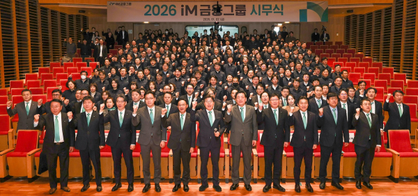iM금융그룹이 이날 대구 소재 iM뱅크 제2본점에서 황병우 회장과 계열사 대표 및 임직원들이 한자리에 모인 가운데 2026년 병오년(丙午年) 새해 힘찬 시작을 다짐하기 위한 시무식을 개최했다고 2일 밝혔다.