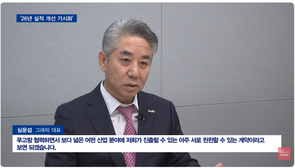 한편, 그래피의 올해 주요 사업 전략과 관련해 심운섭 대표는 팍스경제TV ‘파워인터뷰’에 출연해 전반적인 사업 내용을 소개했습니다.