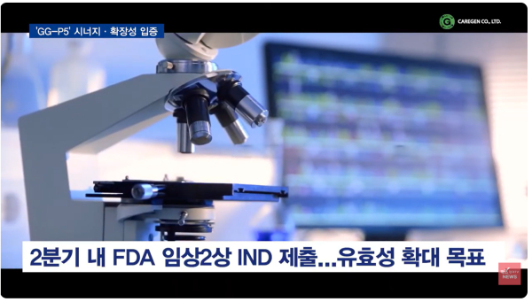 케어젠은 2분기 내 FDA에 임상2상 IND를 신청할 계획이며 치료 효과가 제한적이었던 환자군 가운데 시력 회복 가능성이 있는 환자를 대상으로 임상을 확인하겠다고 밝혔습니다.