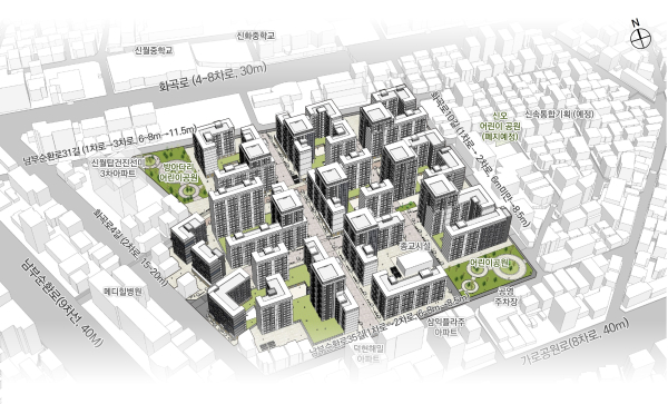 또한 사업지 내 어린이공원 면적을 기존 1개소 937㎡에서 2개소 4,262㎡(남동 측 2,165㎡, 북서측 2,097㎡)로 확대해 생활 기반 시설도 확충할 계획이다.