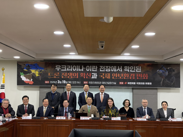 19일 서울 여의도 국회의원회관에서 열린 '우크라이나·이란 전장에서 확인된 드론 전쟁의 확산과 국제 안보환경 변화' 세미나에서 유용원 국민의힘 의원은 "가성비와 정밀도를 앞세운 드론이 전장의 게임체인저가 되고 있다"고 밝혔다.