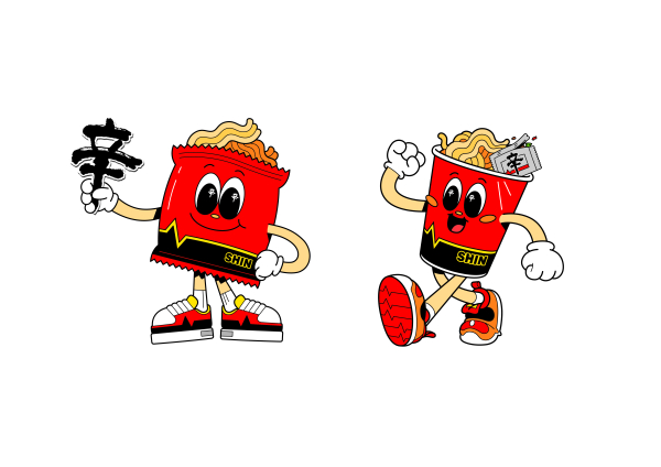 농심은 SHIN 캐릭터의 외형에 신라면 고유의 정체성을 담아냈다. 라면 면발과 신라면 봉지를 연상시키는 디자인을 바탕으로 눈동자와 소품에 ‘辛(매울 신)’ 자를 포인트로 활용했으며, 신발에는 맥박이 뛰는 펄스(Pulse) 디자인을 적용해 생동감을 살렸다.