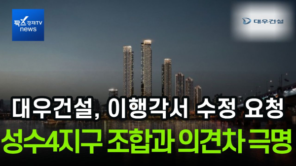 성수 제4지구(성수4지구) 재개발사업을 둘러싼 조합과 대우건설 간 갈등이 좀처럼 해결의 실마리를 찾지 못하고 있다. 조합이 입찰조건으로 요구한 ‘추가이행각서’를 놓고 논란이 더 거세지는 양상이다.