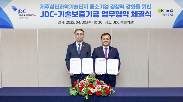 협약에 따라 JDC는 우수 중소기업을 기보에 추천하고, 기보는 이들 기업을 대상으로 ▲보증비율 우대 및 보증료 감면 ▲투자연계 ▲기술이전 및 기술보호 등 맞춤형 지원 프로그램을 연계해 우수기술기업의 혁신성장을 도울 방침이다.