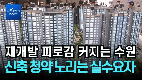 수원시 권선구 이목지구에 들어서는 한 신축 단지 견본주택 현장입니다. 수원 내 신규 민간 분양이 사실상 '가뭄' 상태인 가운데, 실수요자들의 기대감이 고스란히 드러나는 모습입니다.