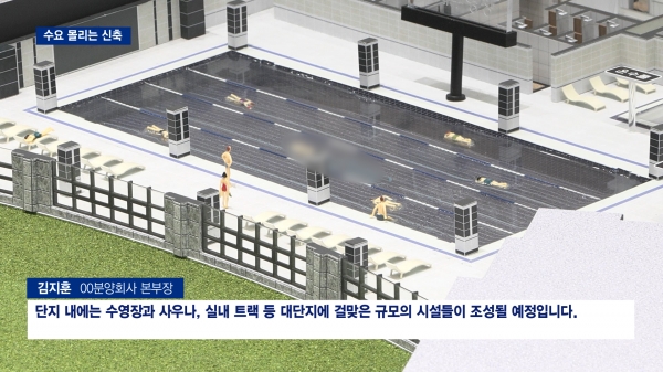 "주변이 대부분 구축 또는 준신축 단지들이다 보니, 커뮤니티 시설에서 확실한 차별화를 기대할 수 있습니다. 단지 내에는 수영장과 사우나, 실내 트랙 등 대단지에 걸맞은 규모의 시설들이 조성될 예정입니다."