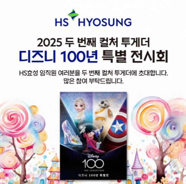 HS효성이 가정의 달인 5월을 맞아 ‘컬처 투게더 시리즈’ 일환으로 임직원과 가족이 함께 즐길 수 있는 '디즈니 100년 특별전'을 준비했다고 지난 2일 밝혔다.