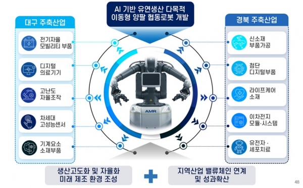해당 사업은 2025년 4월부터 2027년 3월까지 2년간 총사업비 89억 원 규모로 추진되며, 초격차 첨단산업과 연계된 메가시티 협력산업 가치사슬 강화를 통해 지역경제 혁신 성장을 견인하고, 초광역권 협력을 기반으로 기술 중심 균형 발전을 실현하는 데 목적이 있다. 대구광역시는 이번 사업을 경상북도와 협력해 대경권의 AI·로봇 산업 인프라를 연계하고, 첨단 로봇산업 확대 및 AI 기반 자율제조 시스템 구축을 위한 연구개발을 본격적으로 추진할 계획이다.