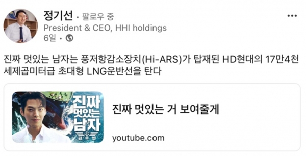HD현대의 정기선 수석부회장은 유튜브 영상이 공개된 직후, 자신의 SNS에 해당 영상을 공유하며 브랜드 메시지 확산에 나섰다. 이러한 행보는 그룹 브랜딩 전략에 총수 리더십이 일정 부분 반영되고 있음을 보여주는 방증이다. HD현대 관계자는 “회사의 이미지를 형성하는 브랜드 캠페인인 만큼, 수석 부회장이 관심을 갖고 지켜보고 있다”며 "2030세대를 포함한 일반 대중을 대상으로 세계 1위 조선업을 영위하는 HD현대의 브랜딩 차원에서 진행했다"고 전했다.