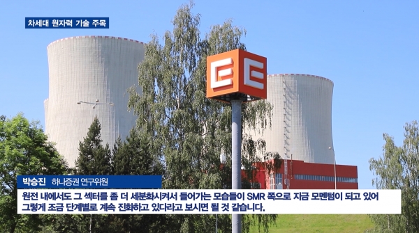 "최근의 정책 기조 자체가 원전 쪽으로 돌아가는 부분들이 있는데 원전으로 그냥 가기보다는 원전 내에서도 그 섹터를 좀 더 세분화시켜서 들어가는 모습들이 SMR 쪽으로 지금 모멘텀이 되고 있어 그렇게 조금 단계별로 계속 진화하고 있다라고 보시면 될 것 같습니다."