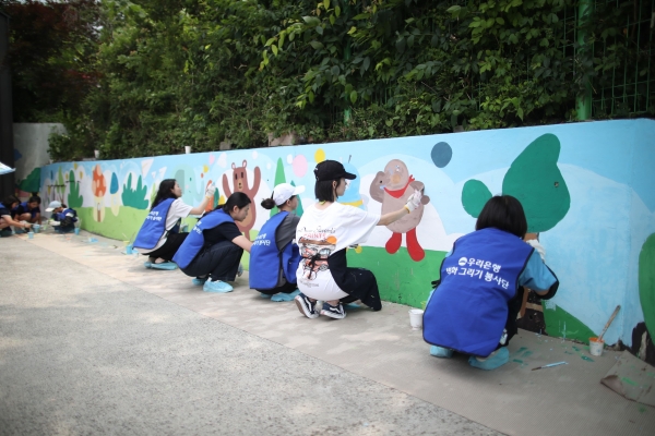 자녀와 함께 참여한 우리은행 직원은 “아이에게 봉사의 즐거움을 알려주고 싶어 참여했다”며, “단순히 벽에 그림을 그리는 것을 넘어 우리의 손길이 누군가에게 따뜻함이 전할 수 있다는 점에서 뜻깊은 시간이었다”고 소감을 밝혔다.