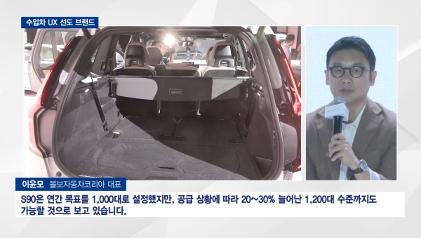 "XC90은 올해 1,300대 판매를 목표로 하고 있으며, 물량을 추가로 확보할 수 있다면 최대 1,500대까지 판매를 추진할 계획입니다. S90은 연간 목표를 1,000대로 설정했지만, 공급 상황에 따라 20~30% 늘어난 1,200대 수준까지도 가능할 것으로 보고 있습니다.