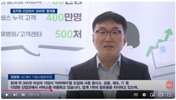 "현재 350개 이상의 기업이 ‘어떠케어’를 도입해 사용 중이고, 금융, 제조, IT 등 다양한 산업군에서 서비스를 이용하고 있습니다. 업계 1위의 점유율을 차지하고 있으며, 올해는 약 60만 명의 기업 임직원 분들이 어떠케어를 통해서 건강검진을 예약하고 결과를 볼 것으로 예상합니다."
