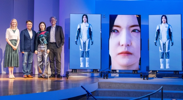 미술관 내 원형극장에서 진행된 설명회에서 관객은 77형 LG 올레드 에보(evo) 6대를 통해 작가 대표작 ‘딜리버리 댄서’ 시리즈 속 주인공 ‘에른스트 모(Ernst Mo)’와 ‘엔 스톰(En Storm)’을 만났다. LG 올레드 에보는 극장 좌우에 세로로 3대씩 설치돼 주인공이 바이크를 타고 질주하거나 도시를 떠다니는 모습을 실감나게 연출했다. 관객은 올레드 에보의 압도적 화질로 작가 작품 세계와 무대가 하나로 어우러지는듯한 몰입감을 경험했다.