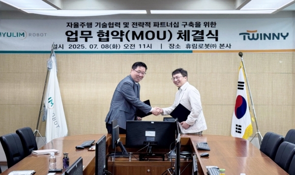이번 협약을 계기로 두 회사는 트위니 공장자동화 솔루션 ‘TCS’와 휴림로봇 자율주행 로봇 연동 및 연동 제품 생산 검토 등 로봇 비즈니스에서 협력을 모색해본다는 계획이다.