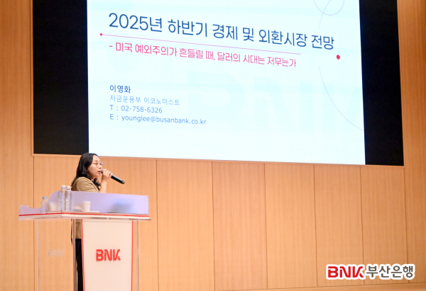 부산은행이 부산은행 본점 오션홀에서 부·울·경 지역의 수출입 업체 담당자 150여 명을 초청해 ‘2025년 하반기 환율 및 글로벌 경제 전망’에 대한 세미나를 열었다고 15일 밝혔다.