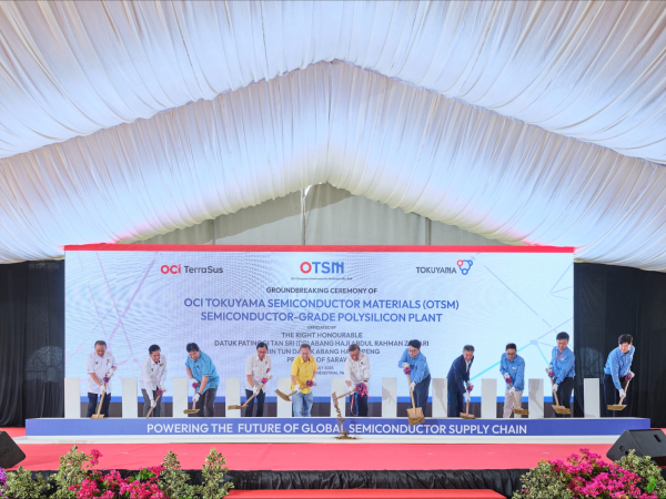 OCI홀딩스는 16일 오전 자회사 OCI TerraSus(구 OCI M)가 말레이시아 사라왁주 사말라주 산업단지에서 일본 화학전문기업 도쿠야마(社)와 반도체용 폴리실리콘 합작공장 기공식을 개최했다고 17일 밝혔다.