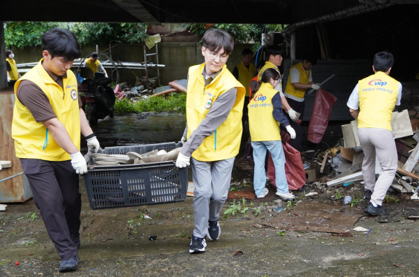 복구 현장에는 서부발전 임직원 20여 명과 태안군 자원봉사센터, 상인회 등이 참여해 침수된 상점과 인근 도로에 흐트러진 생활 쓰레기와 잔해물을 수거하고 배수로 정비, 진흙 제거 등 시급한 조치를 진행했다.