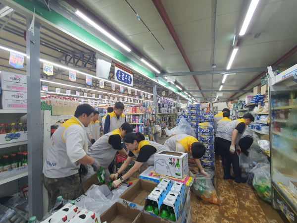 또 회사는 노동조합 및 한전KPS, 한전산업개발, 금화PSC, 일진파워 등 4개 협력사와 함께 총 60여명 봉사단을 꾸려 피해 현장을 찾아, 상가 주변 정리, 폐기물 수거 등 복구 작업을 도왔다.