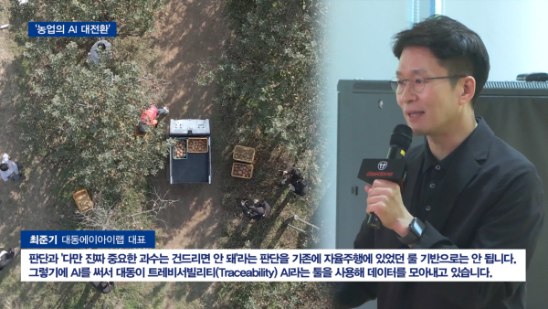 AI로 판단을 해서 '이곳은 길이고, 여기 있는 곳들은 오프로드야'라는 판단과 '다만 진짜 중요한 과수는 건드리면 안 돼'라는 판단을 기존에 자율주행에 있었던 룰 기반으로는 안 됩니다. 그렇기에 AI를 써서 대동이 트레비서빌리티(Traceability) AI라는 툴을 사용해 데이터를 모아내고 있습니다."